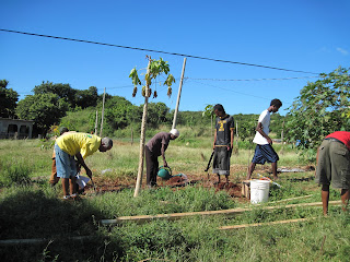 This is building week - first chicken coop for Bro. Tillock on Tuesday and Thursday, Friday a goat pen for Sister Alveranga, and Saturday we will help with the foundation work for another chicken coop for Sister Green. Here is the whole crew, minus Ritchie, an investigator who came for a couple hours and then had to go to work. The sister missionaries chopped the weeds for the coop, the men dug holes for the corner poles, then they made the floor, the roof and last the walls and door. The kids enjoyed playing with the wooden 'blocks' - cut off ends of boards. Great project! One picture shows Sister Alveranga washing her dishes with a grandson under the kitchen sink - these people are amazing - they do so much with so little!